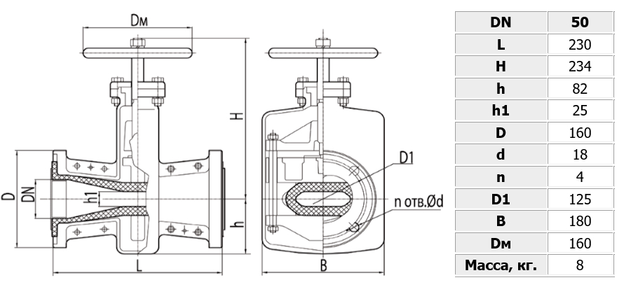 Задвижка 33а17р Ду 50 шланговая