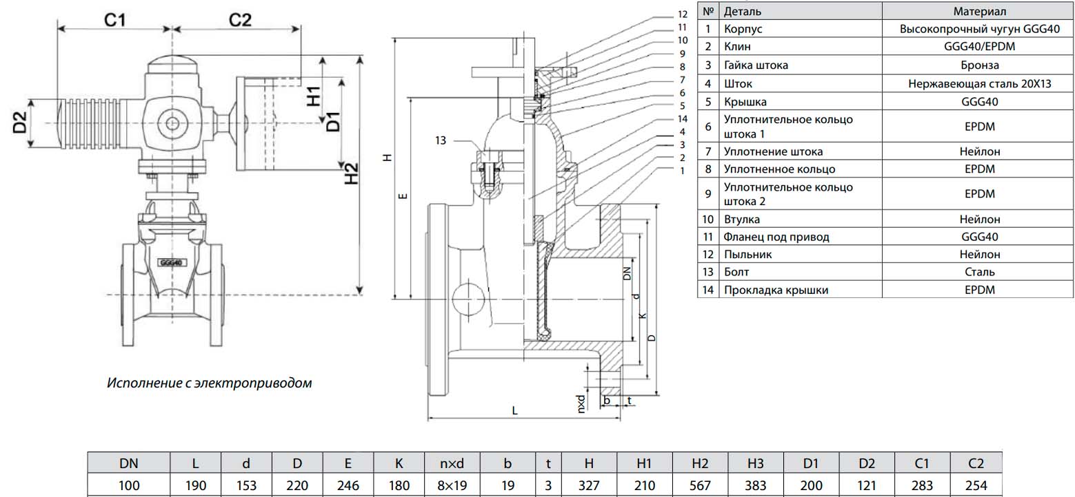 Задвижка ADL ГРАНАР KR12 Ду 100 Ру 10/16 с электроприводом AUMA SA 10.2 фланцевая клиновая