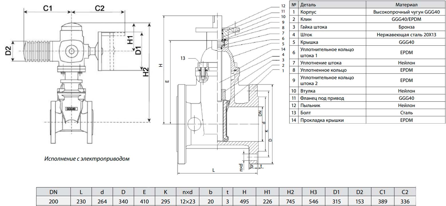 Задвижка ADL ГРАНАР KR12 Ду 200 Ру 16 с электроприводом AUMA SA 14.2 фланцевая клиновая