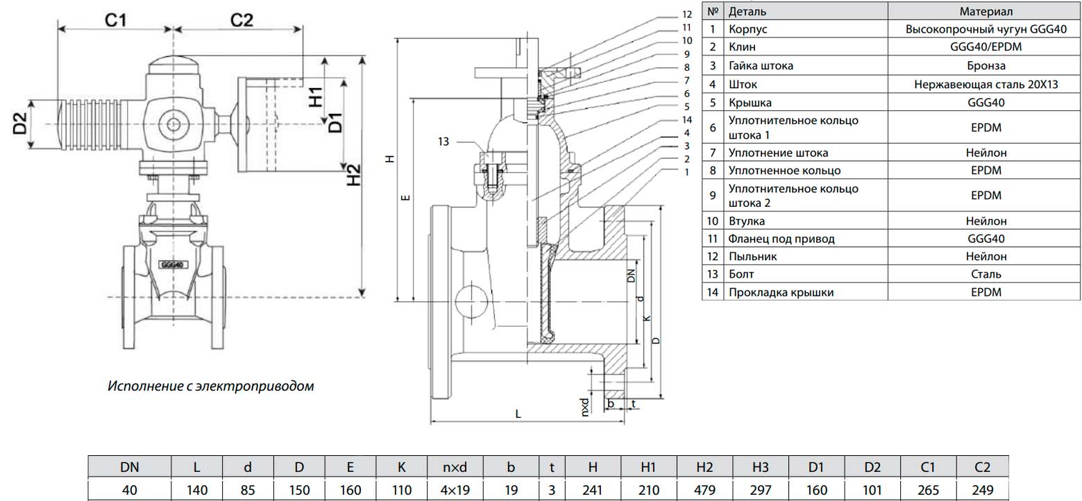 Задвижка ADL ГРАНАР KR12 Ду 40 Ру 10/16 с электроприводом AUMA SA 07.6 фланцевая клиновая