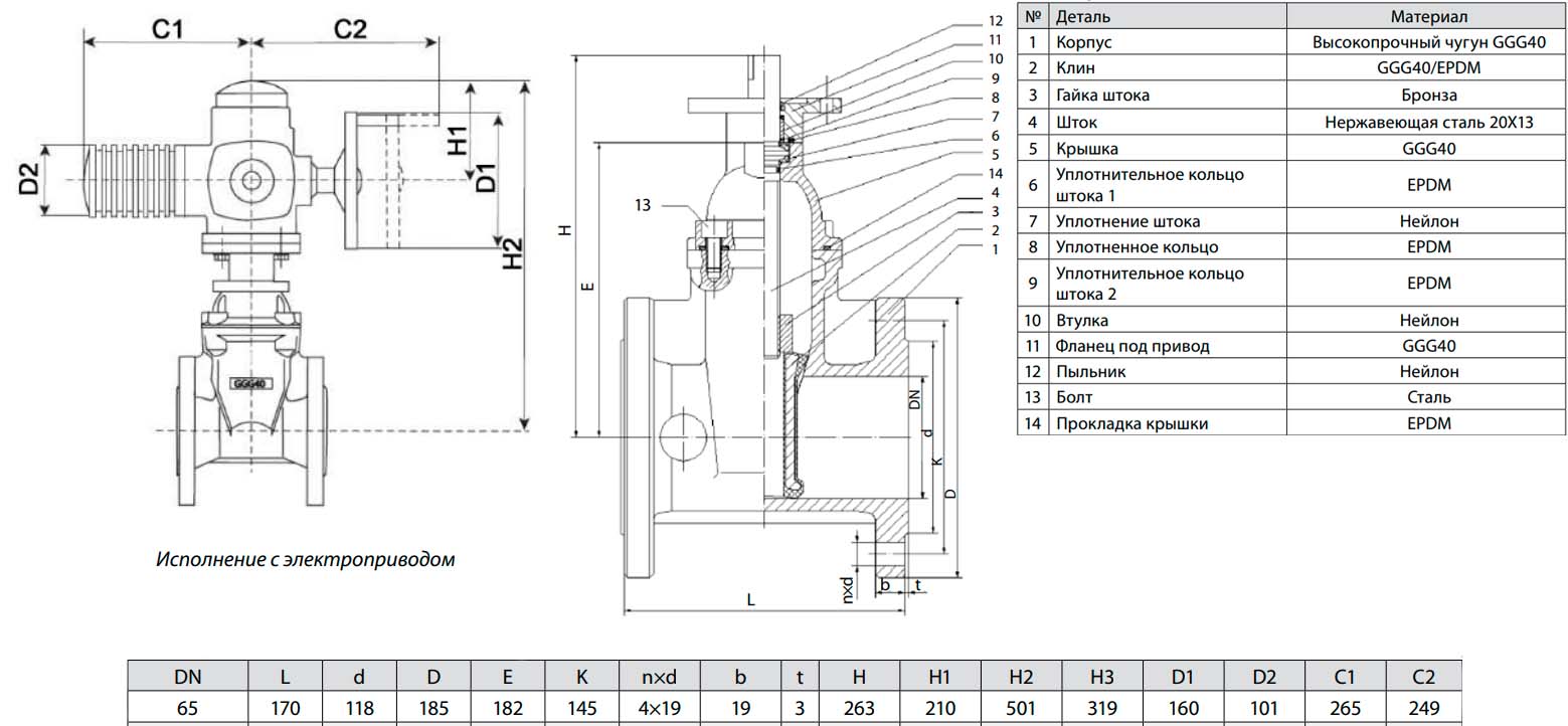 Задвижка ADL ГРАНАР KR12 Ду 65 Ру 10/16 с электроприводом AUMA SA 07.6 фланцевая клиновая