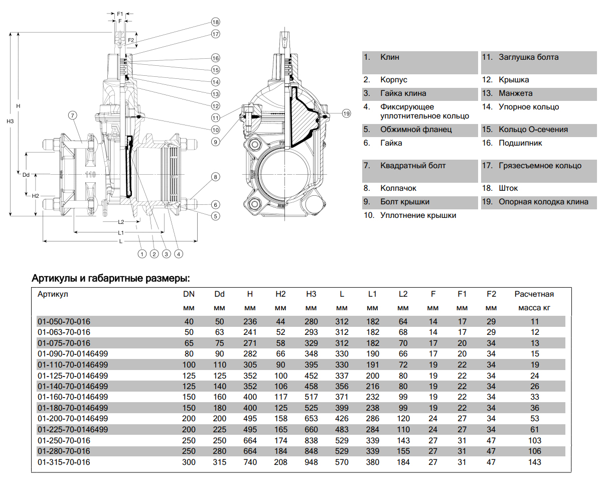 Задвижка AVK 01/70-035 DN 40/50 PN 16 SUPA PLUS клиновая