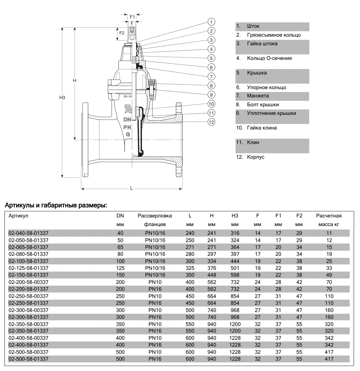 Задвижка AVK 02/70 DN 350 PN 10 клиновая фланцевая