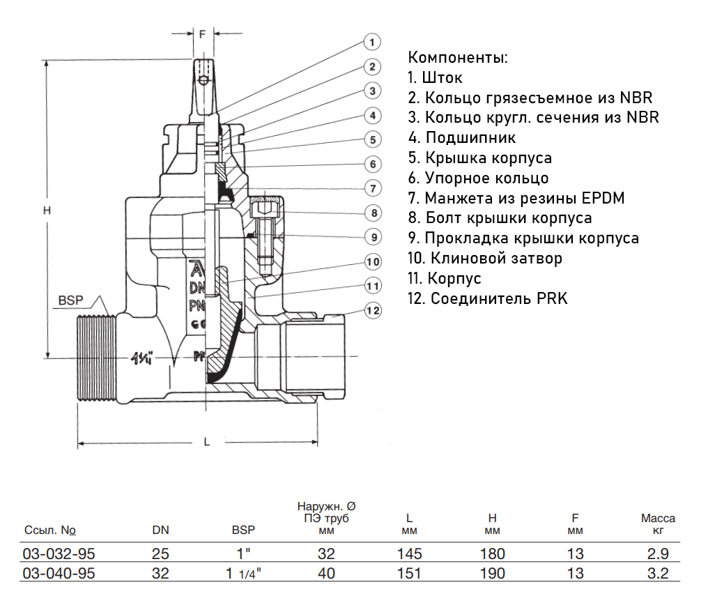 Задвижка AVK 03/95 DN 32 PN 10 ответвительная с PRK для ПЭ труб и наружной резьбой