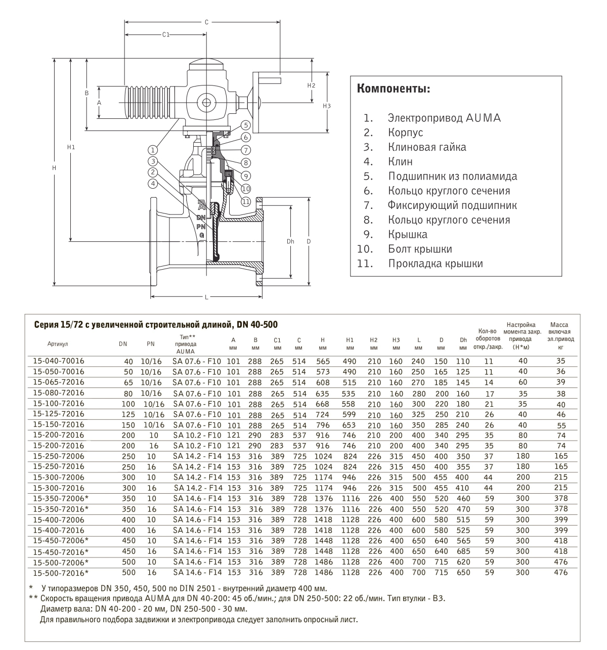 Задвижка AVK 15/72a DN 80 PN 10/16 клиновая с электроприводом AUMA фланцевая