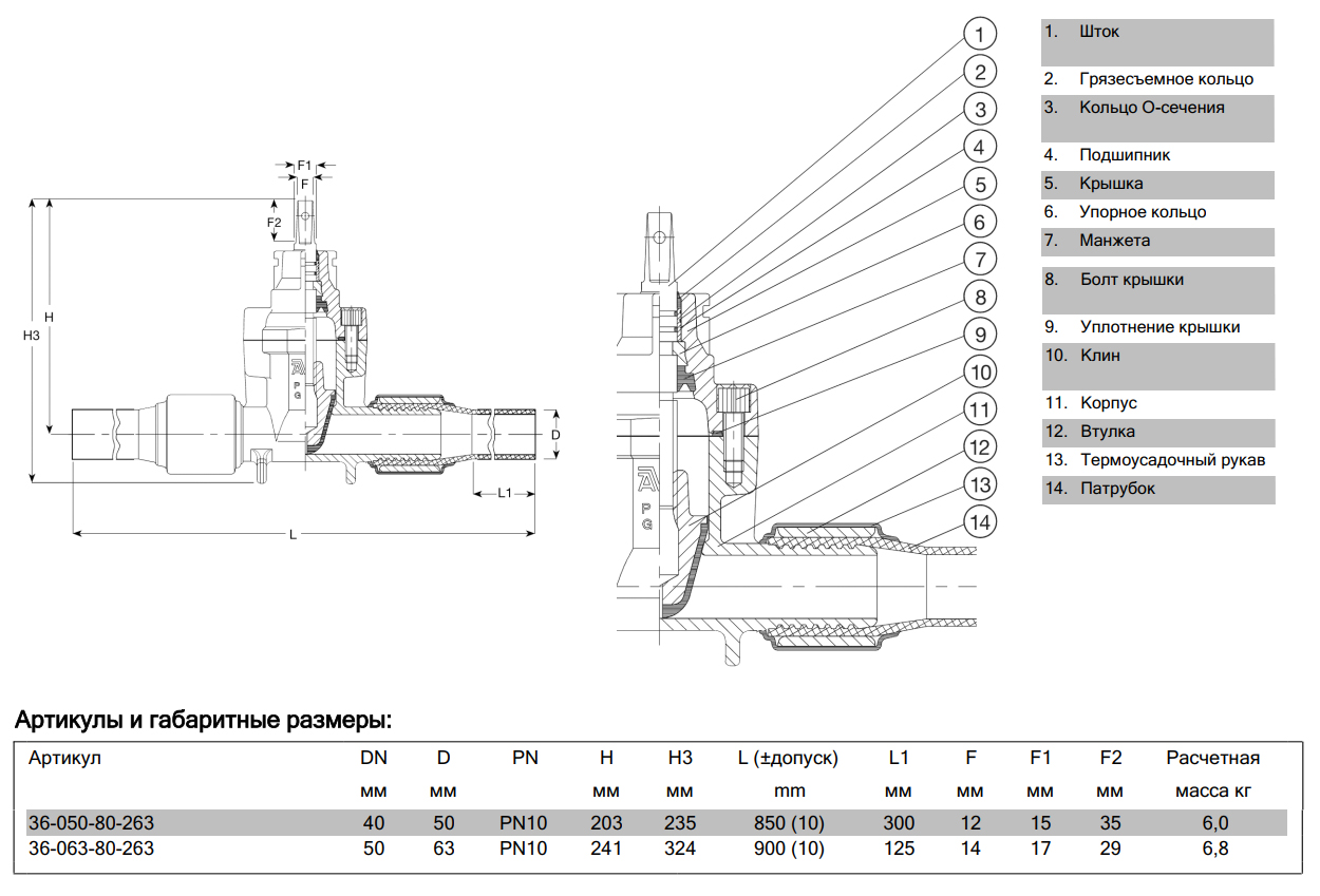 Задвижка AVK 36/8X DN 40 PN 10 ответвительная с ПЭ патрубками фланцевая