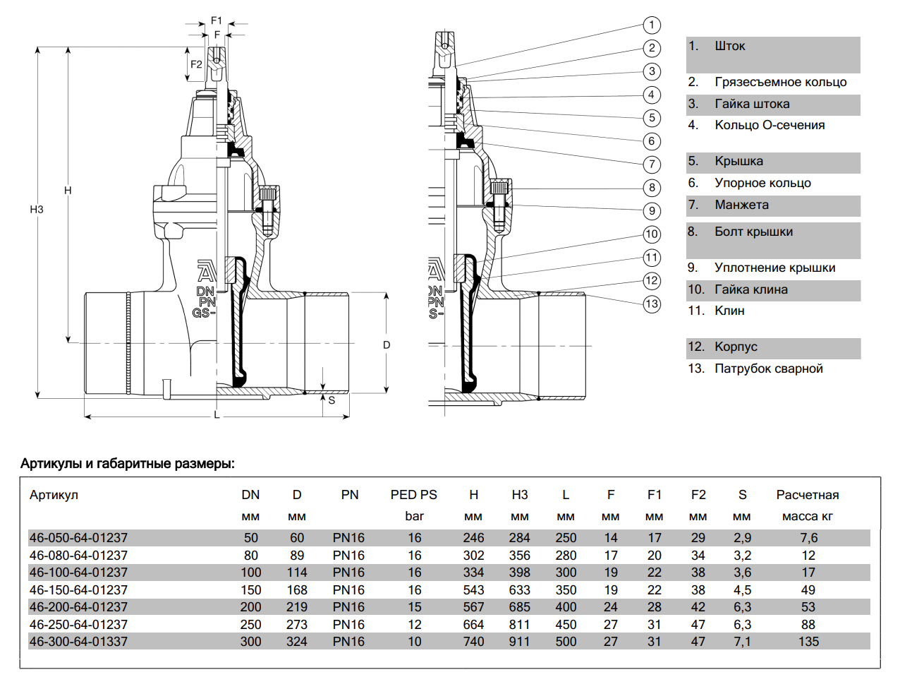 Задвижка AVK 46/64 DN 300 PN 16 с короткими стальными патрубками
