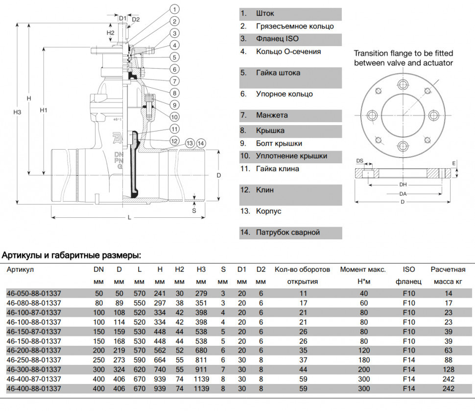 Задвижка AVK 46/78 DN 150 PN 16 с длинными сварными патрубками