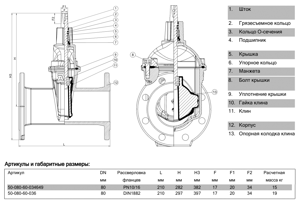 Задвижка AVK 50/60-015 DN 80 PN 10/16 клиновая фланцевая