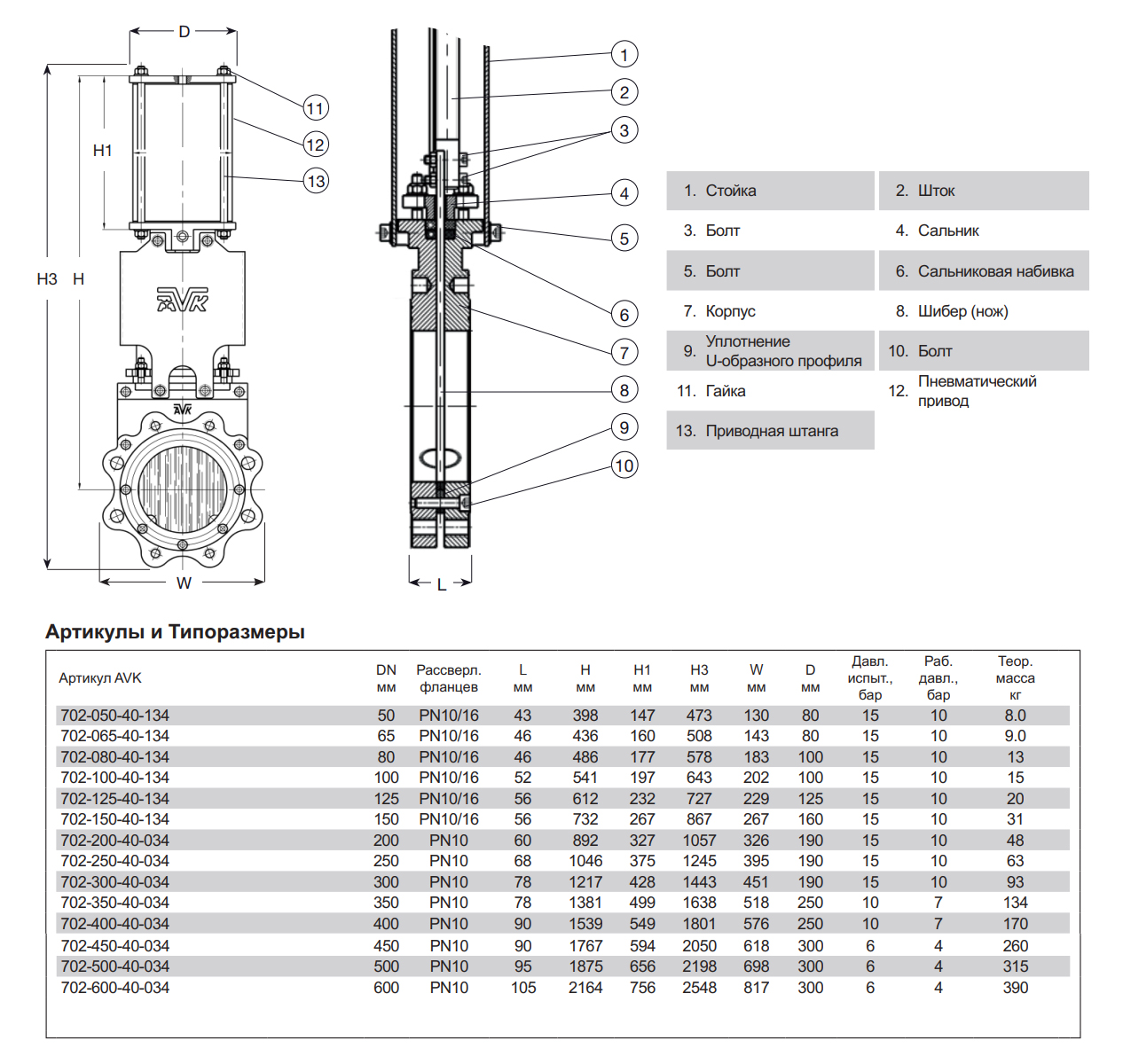 Задвижка AVK 702/40 DN 300 PN 10 ножевая шиберная фланцевая