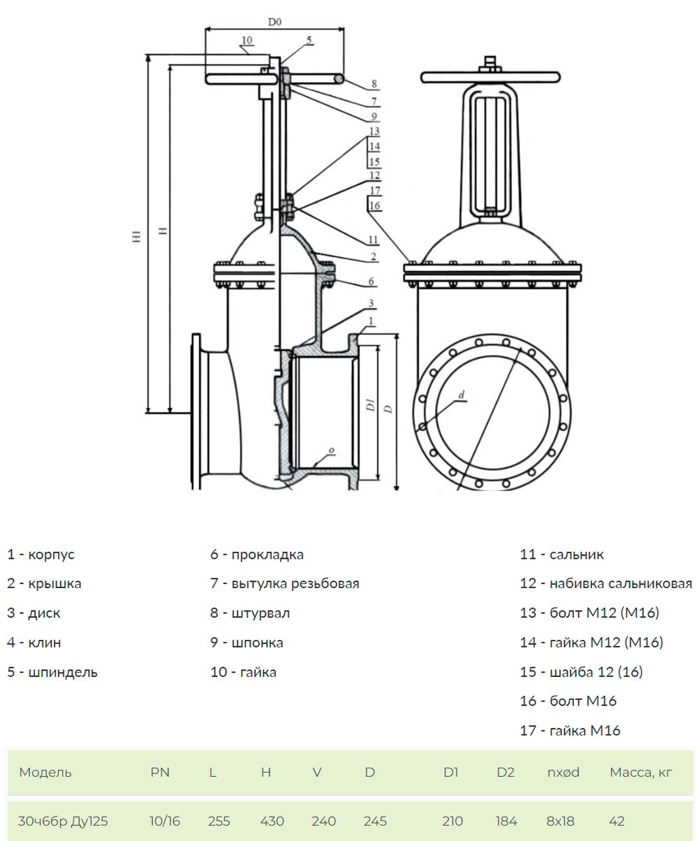 Задвижка ЛМЗ Ду 125 Ру 16 30ч6бр фланцевая клиновая чугунная под штурвал параллельная с выдвижным шпинделем