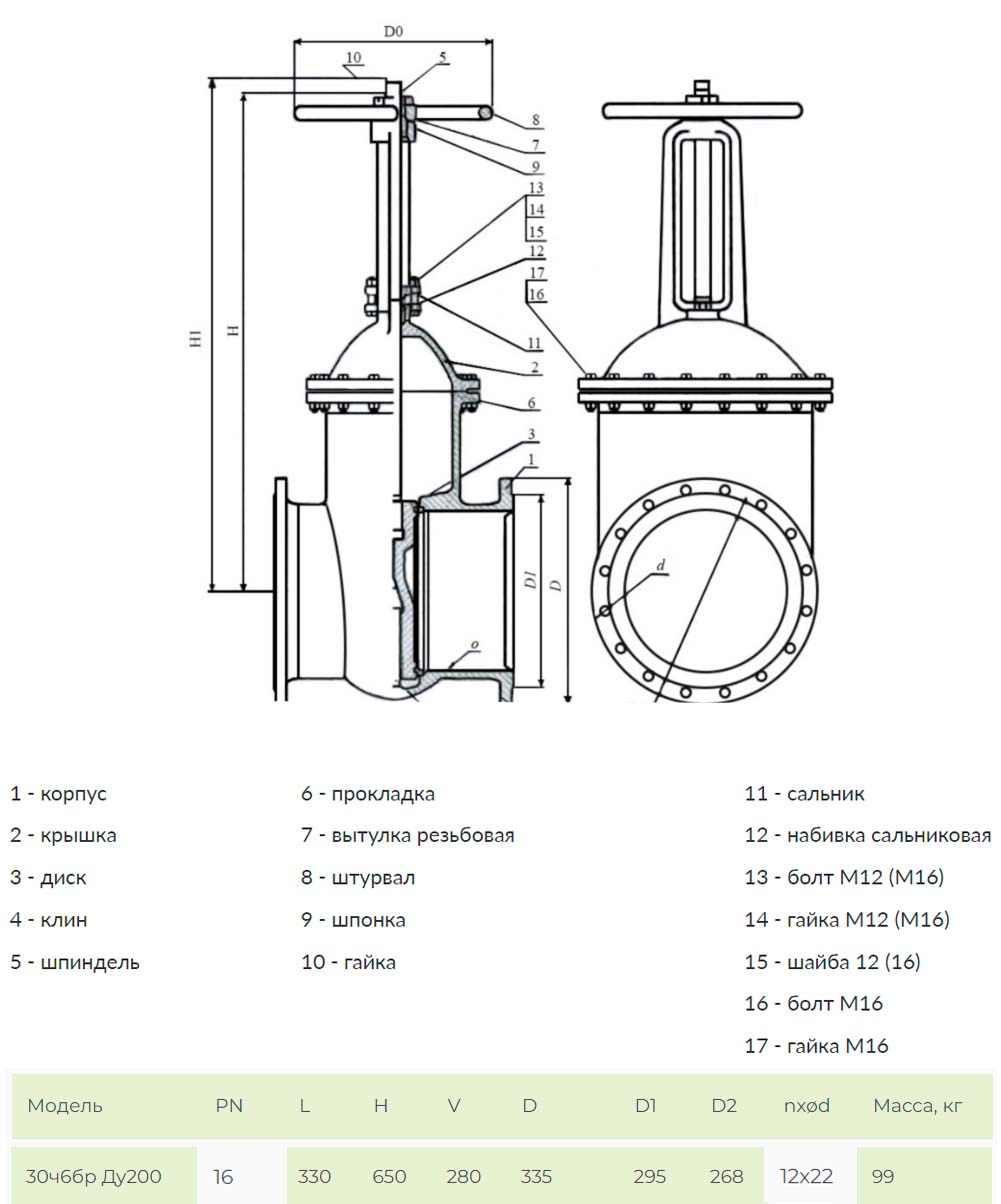 Задвижка ЛМЗ Ду 200 Ру 16 30ч6бр фланцевая клиновая чугунная под штурвал параллельная с выдвижным шпинделем