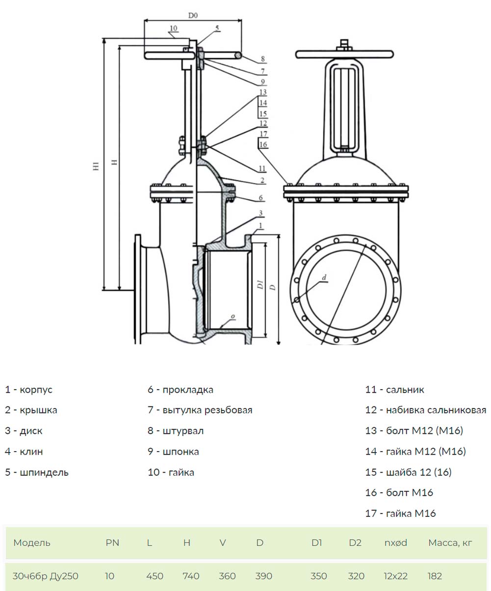 Задвижка ЛМЗ Ду 250 Ру 10 30ч6бр фланцевая клиновая чугунная под штурвал параллельная с выдвижным шпинделем