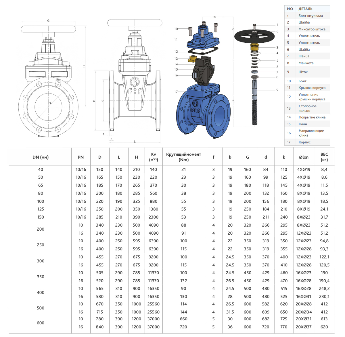 Задвижка FAF 6000D DN 400 PN 16 фланцевая клиновая высокопрочный чугун (F4) под электропривод/с редуктором с обрезиненным клином