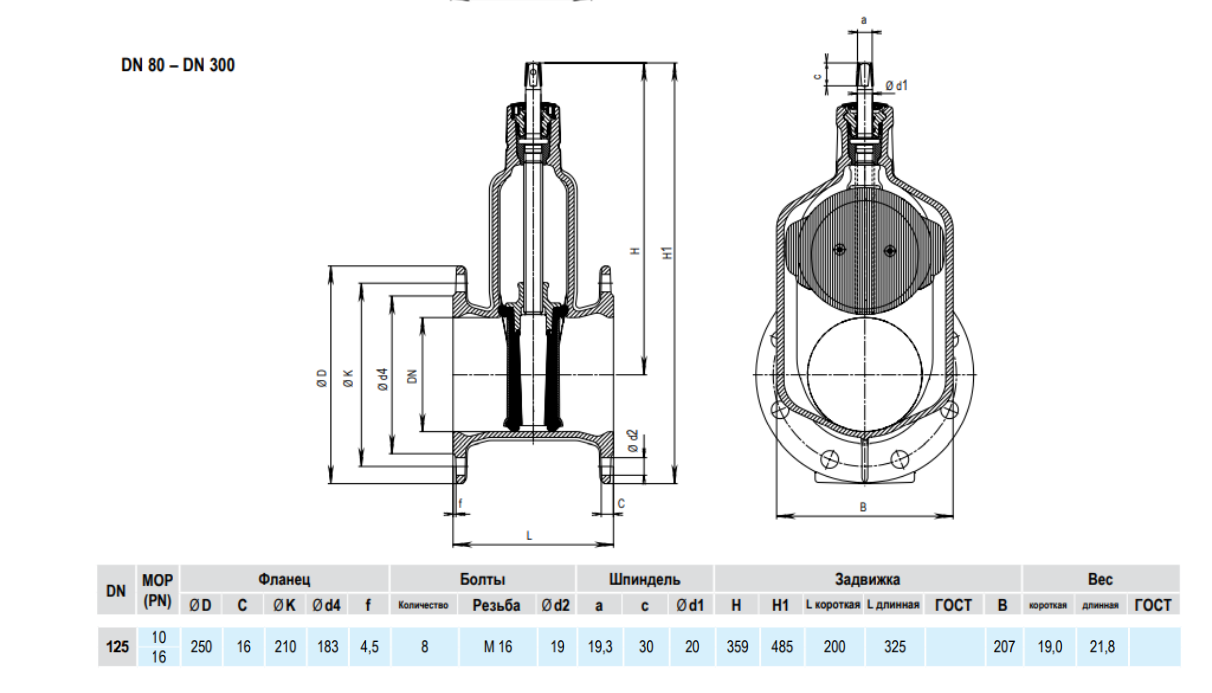 Задвижка HAWLE 4000A DN 125 PN 10/16 фланцевая клиновая чугунная с обрезиненным клином короткая в монолитном корпусе