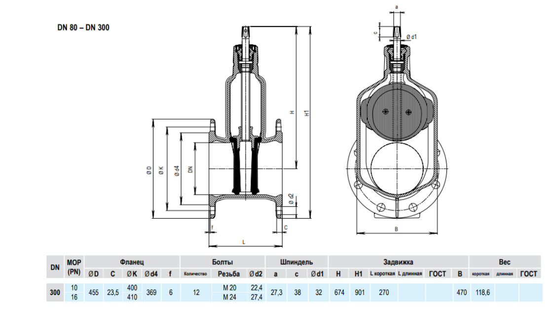 Задвижка HAWLE 4000A DN 300 PN 16 фланцевая клиновая чугунная с обрезиненным клином короткая в монолитном корпусе