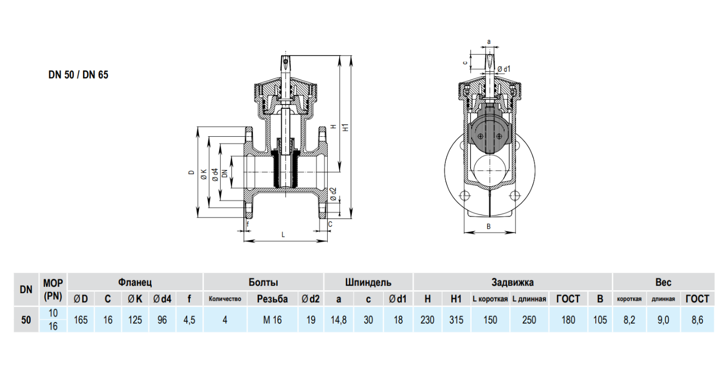 Задвижка HAWLE 4000A DN 50 PN 10/16 фланцевая клиновая чугунная с обрезиненным клином короткая в монолитном корпусе