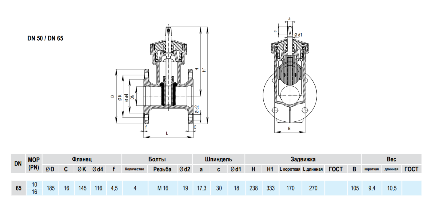 Задвижка HAWLE 4000A DN 65 PN 10/16 фланцевая клиновая чугунная с обрезиненным клином короткая в монолитном корпусе
