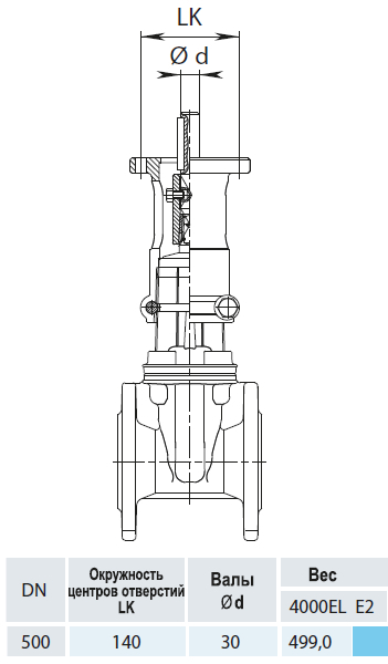 Задвижка HAWLE 4000ELE2 DN 500 PN 10 фланцевая клиновая чугунная с переходником для э/привода с обрезиненным клином