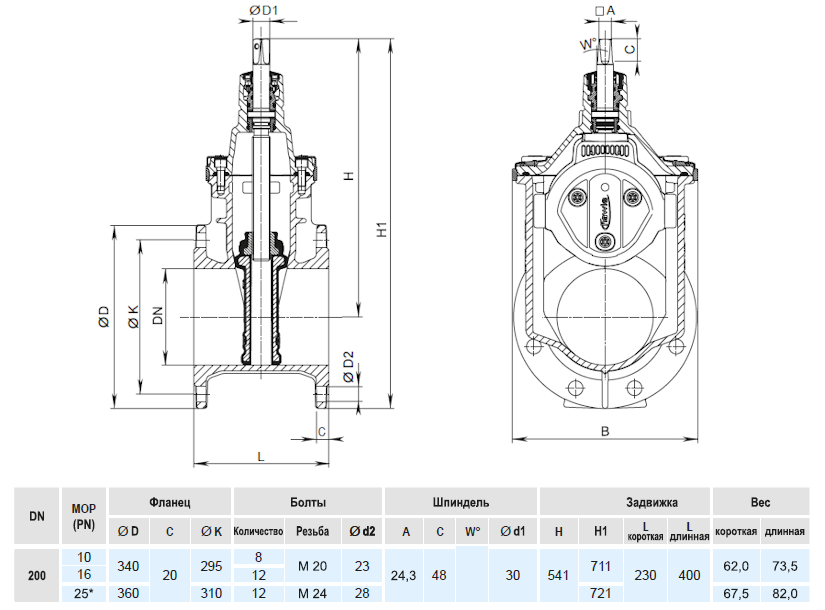 Задвижка HAWLE 4000ELE3 DN 200 мм PN 16 фланцевая клиновая чугунная с переходником для э/привода с обрезиненным клином