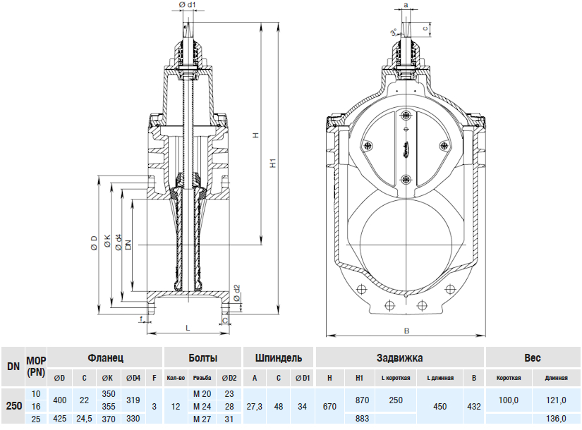 Задвижка HAWLE 4000ELE3 DN 250 мм PN 16 фланцевая клиновая чугунная с переходником для э/привода с обрезиненным клином