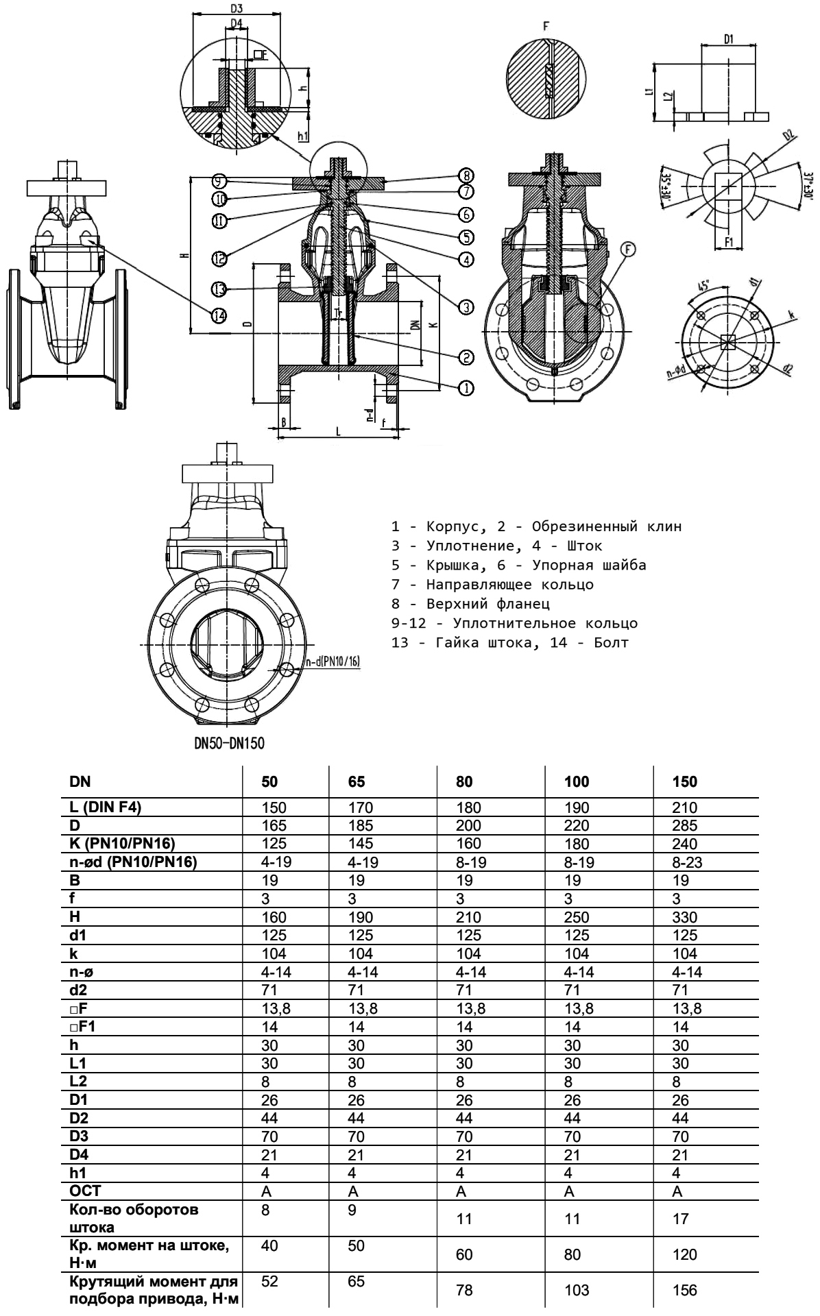 Задвижка клиновая Benarmo 30ч939р 23FGA аналог МЗВ DN 150 PN 10/16 присоединение А под электропривод с невыдвижным шпинделем, уплотнение - EPDM