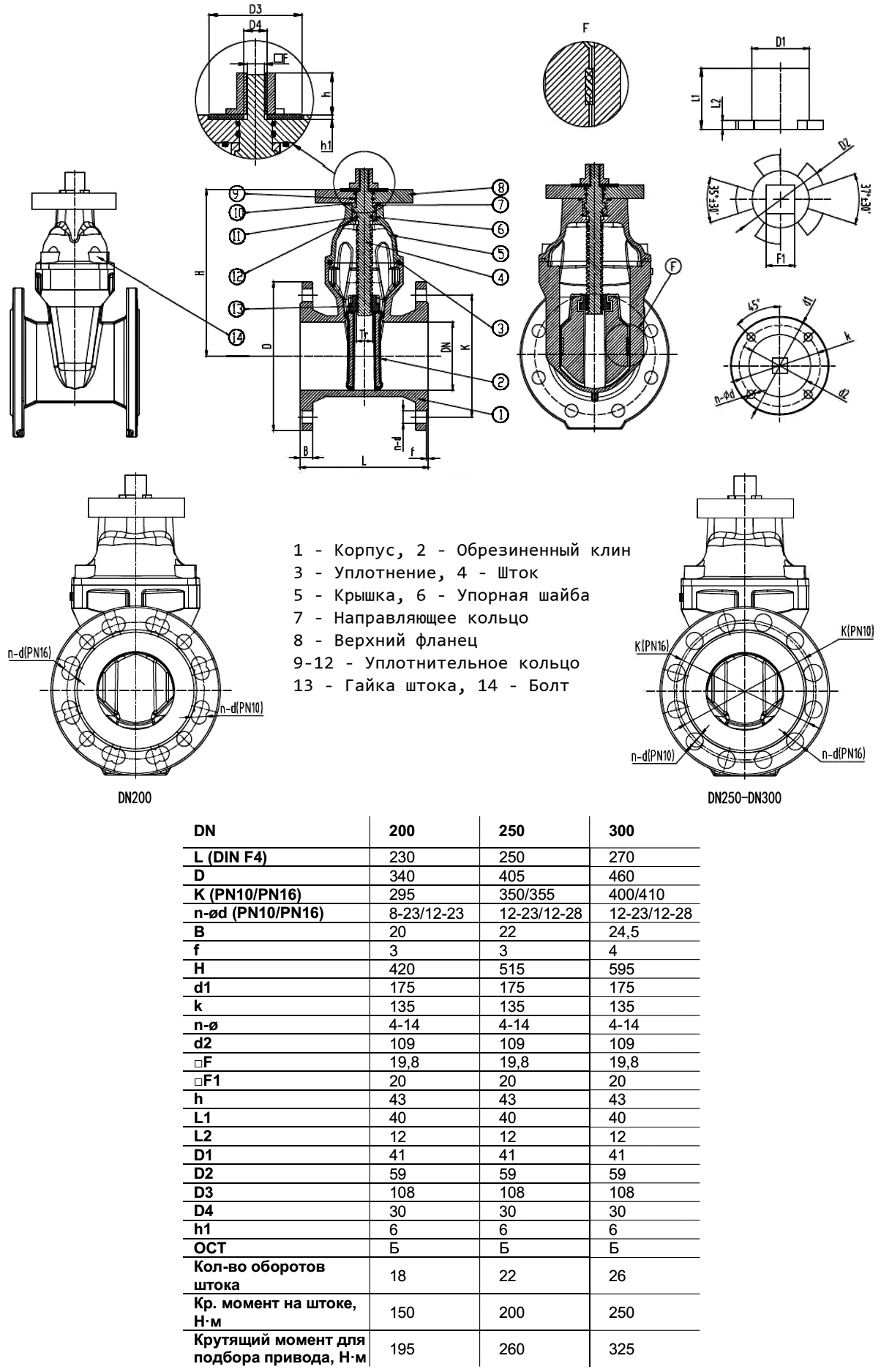 Задвижка клиновая Benarmo 30ч939р 23FGA аналог МЗВ DN 300 PN 10/16 присоединение А под электропривод с невыдвижным шпинделем, уплотнение - EPDM