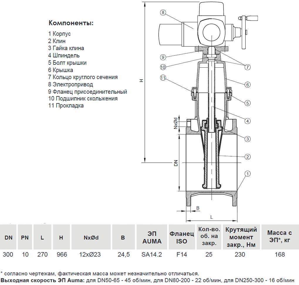 Задвижка VGA D21.04 DN 300 PN 10 фланцевая клиновая чугунная с электроприводом с обрезиненным клином
