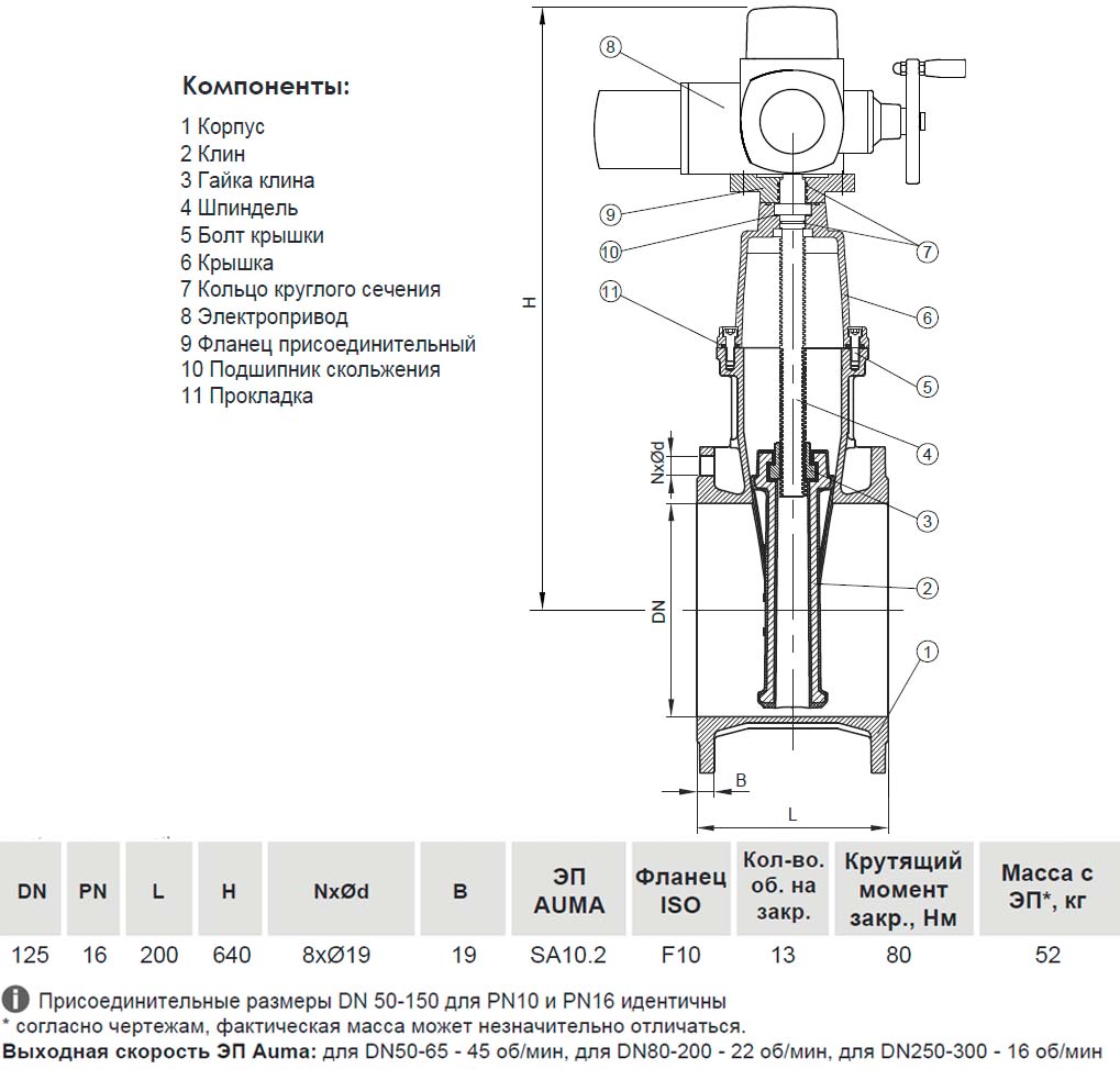 Задвижка VGA D21.04 DN 125 PN 10/16 фланцевая клиновая чугунная с электроприводом с обрезиненным клином