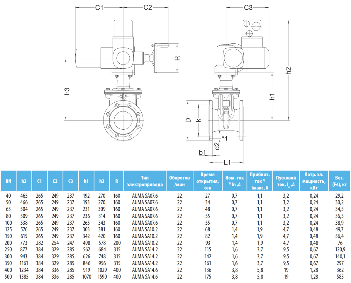 Задвижка VAG EKOPlus DN 200 PN 16 фланцевая клиновая чугунная с электроприводом AUMA SA 10.2 с обрезиненным клином