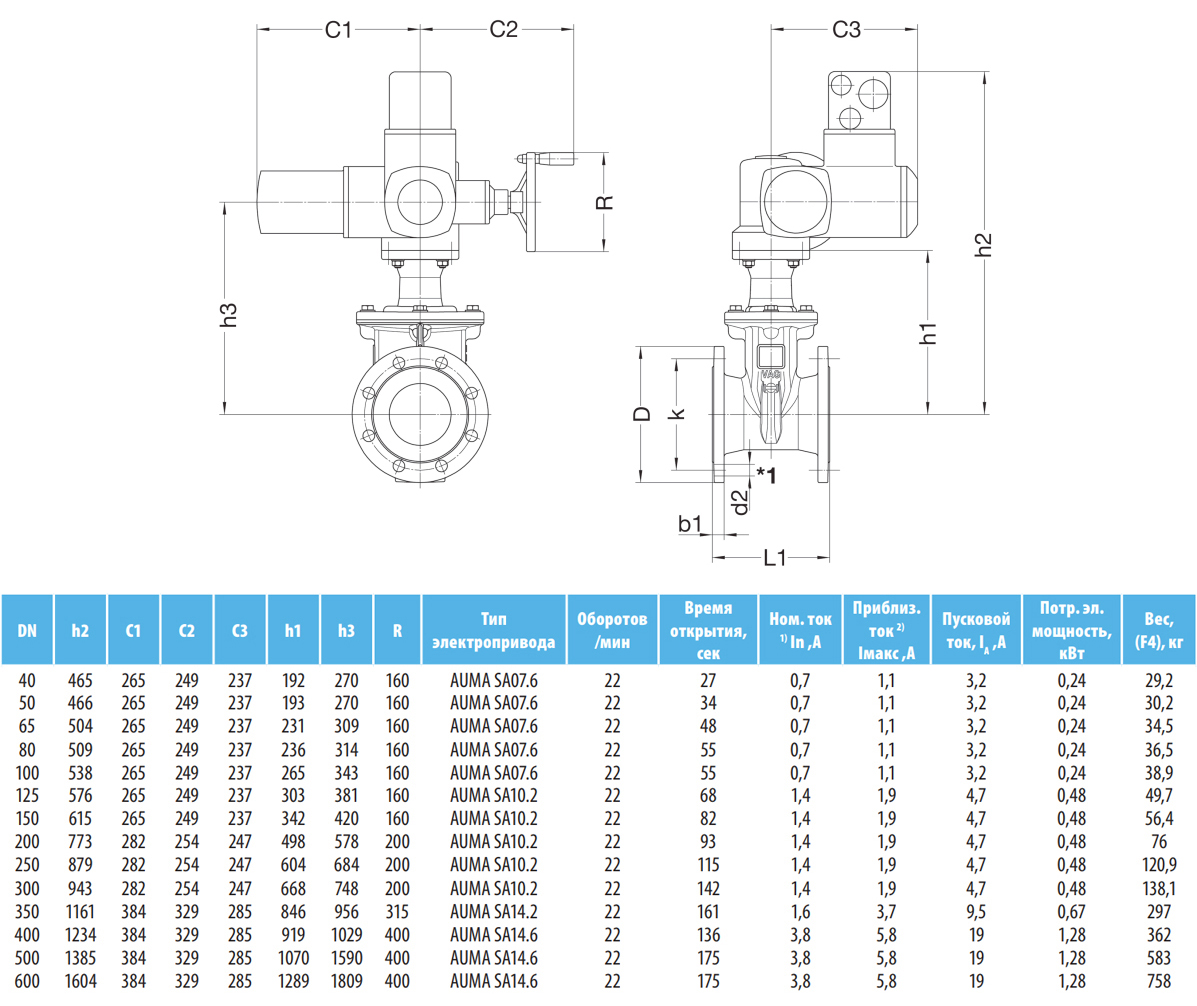 Задвижка VAG EKOPlus DN 500 PN 10 фланцевая клиновая чугунная с электроприводом AUMA SA 10.2 с обрезиненным клином