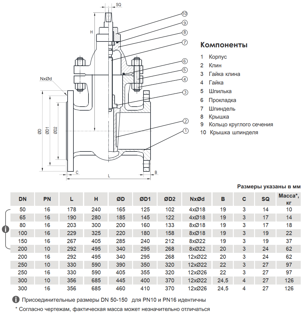 Рабочая средаПитьевая вода и нейтральные жидкости (неагрессивные к материалам изделия), хозбытовые сточные воды с массовой долей твердых включений до 10% (применение по согласованию), промышленные и поверхностные сточные воды