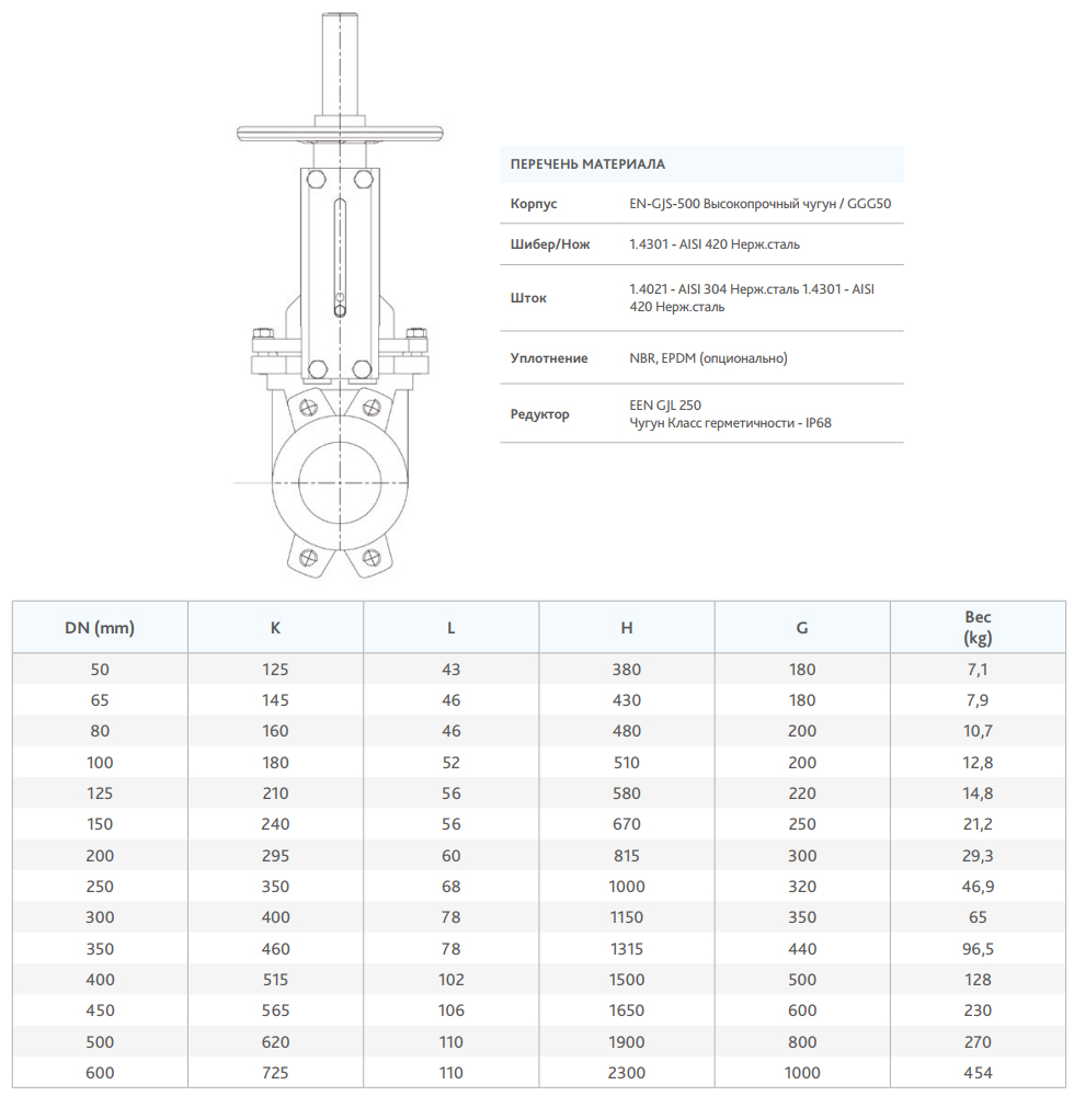 Задвижка межфланцевая FAF 6500 DN 600 PN 10 шиберная ножевая с выдвижным шпинделем