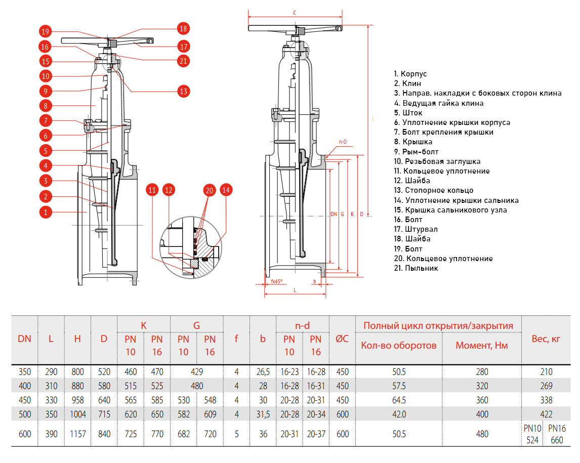 Задвижка Рашворк 101 DN 500 PN 16 с обрезиненным клином