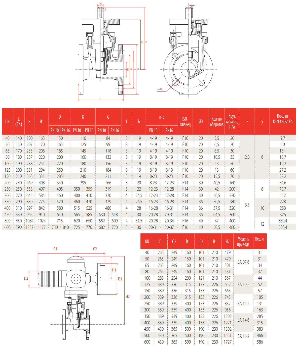 Задвижка Рашворк 104 DN 350 PN 10 с обрезиненным клином с электроприводом Auma SA 14.6.6