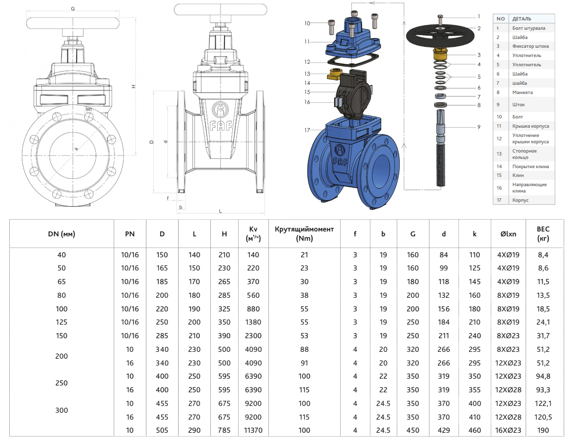 Задвижка FAF 6010D DN 150 PN 10 фланцевая с обрезиненным клином с маховиком