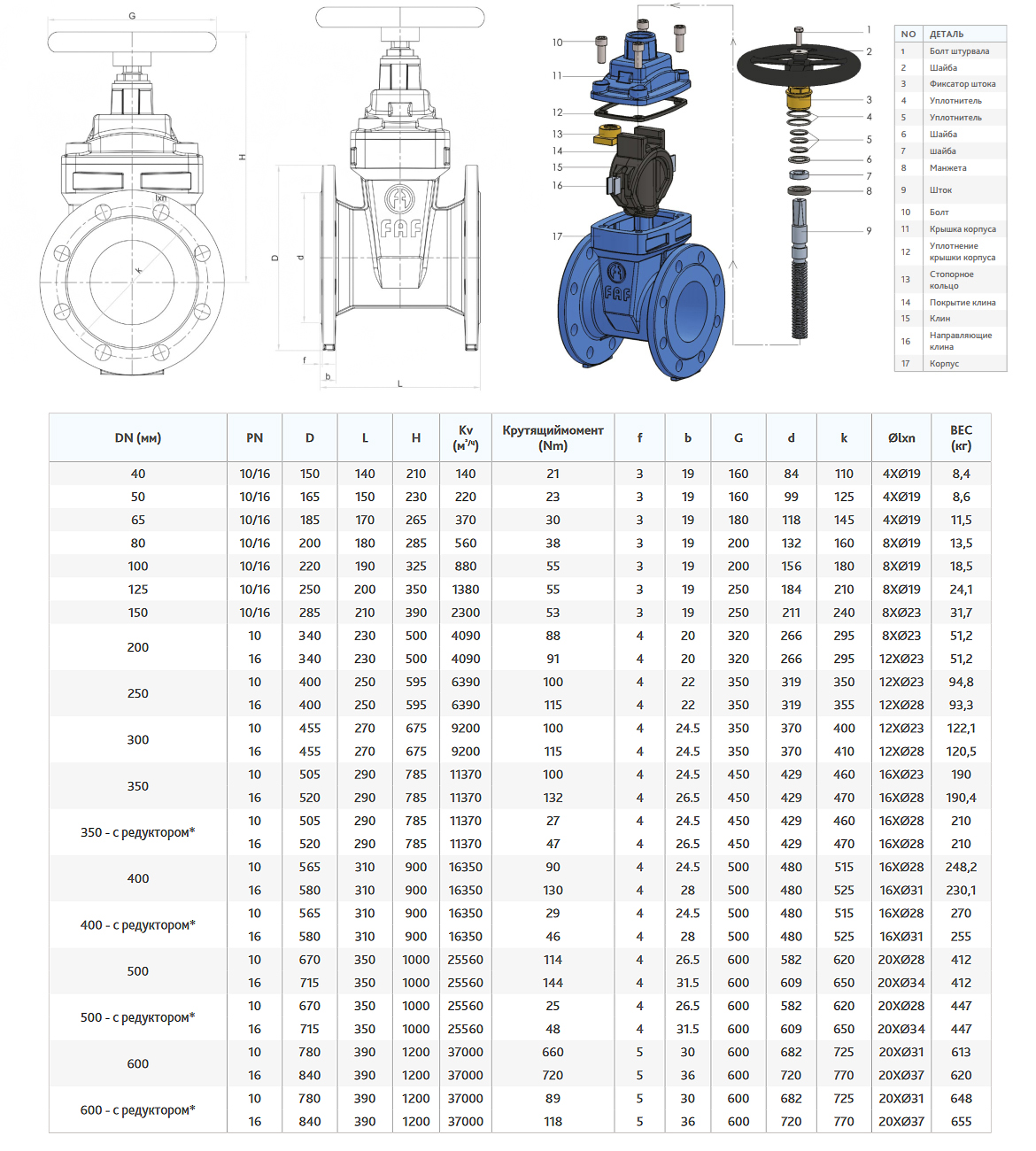 Задвижка FAF 6010D DN 80 PN 10 фланцевая с обрезиненным клином с маховиком