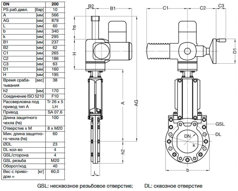 Задвижка шиберная ножевая VAG ZETA DN 200 PN 10 с электроприводом AUMA SA07.6