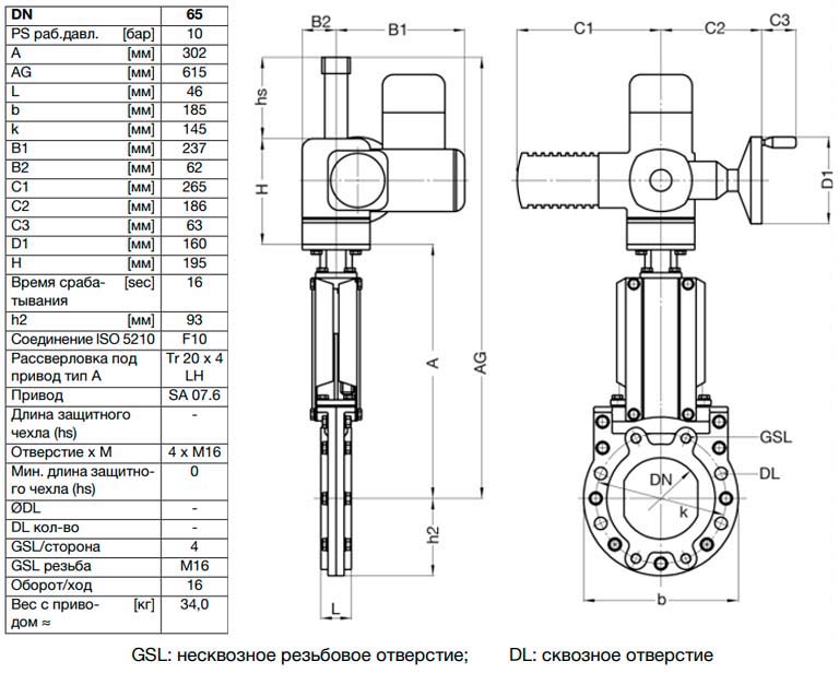 Задвижка шиберная ножевая VAG ZETA DN 65 PN 10 с электроприводом AUMA SA07.6