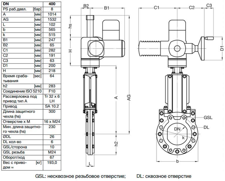 Задвижка шиберная ножевая VAG ZETA DN 400 PN 10 с электроприводом AUMA SA10.2