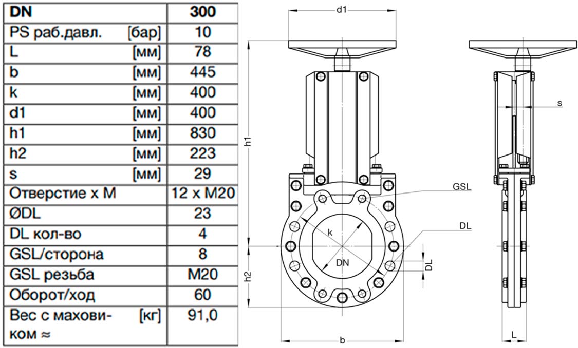 Задвижка шиберная ножевая VAG ZETA DN 300 PN 10 со штурвалом