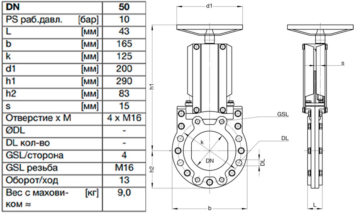 Задвижка шиберная ножевая VAG ZETA DN 50 PN 10 со штурвалом