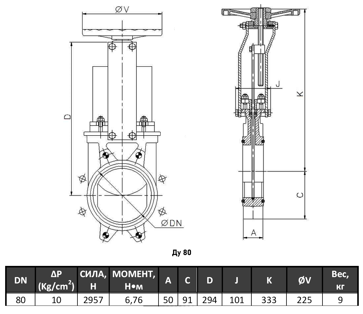 Задвижка шиберная СМО AB-01-HW(N)-E Ду 80 Ру 10 двусторонняя с невыдвижным шпинделем чугунная межфланцевая со штурвалом