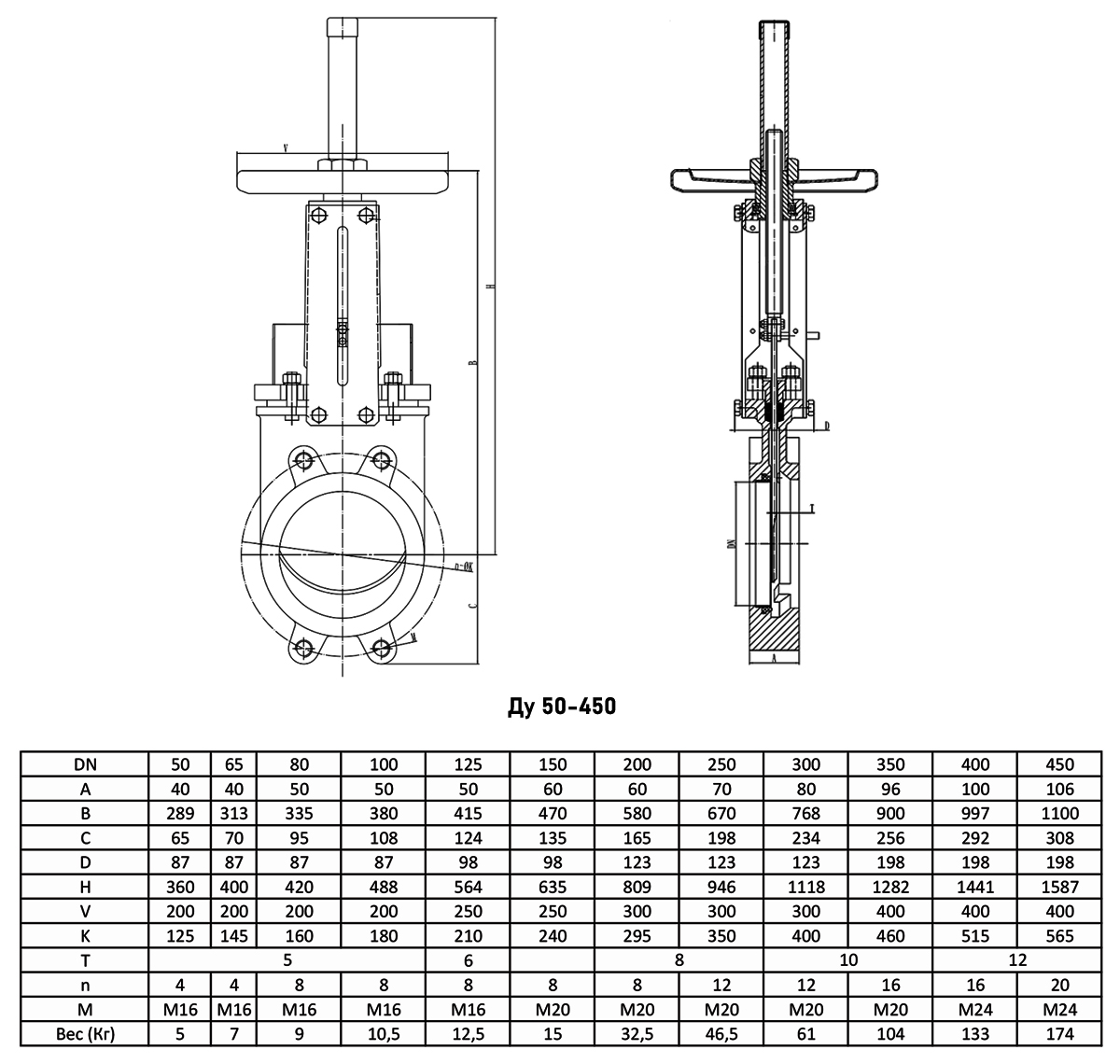 Задвижка шиберная VALSTOK VA-012-01-HW-E Ду 50 Ру 10 односторонняя чугунная межфланцевая со штурвалом с выдвижным шпинделем