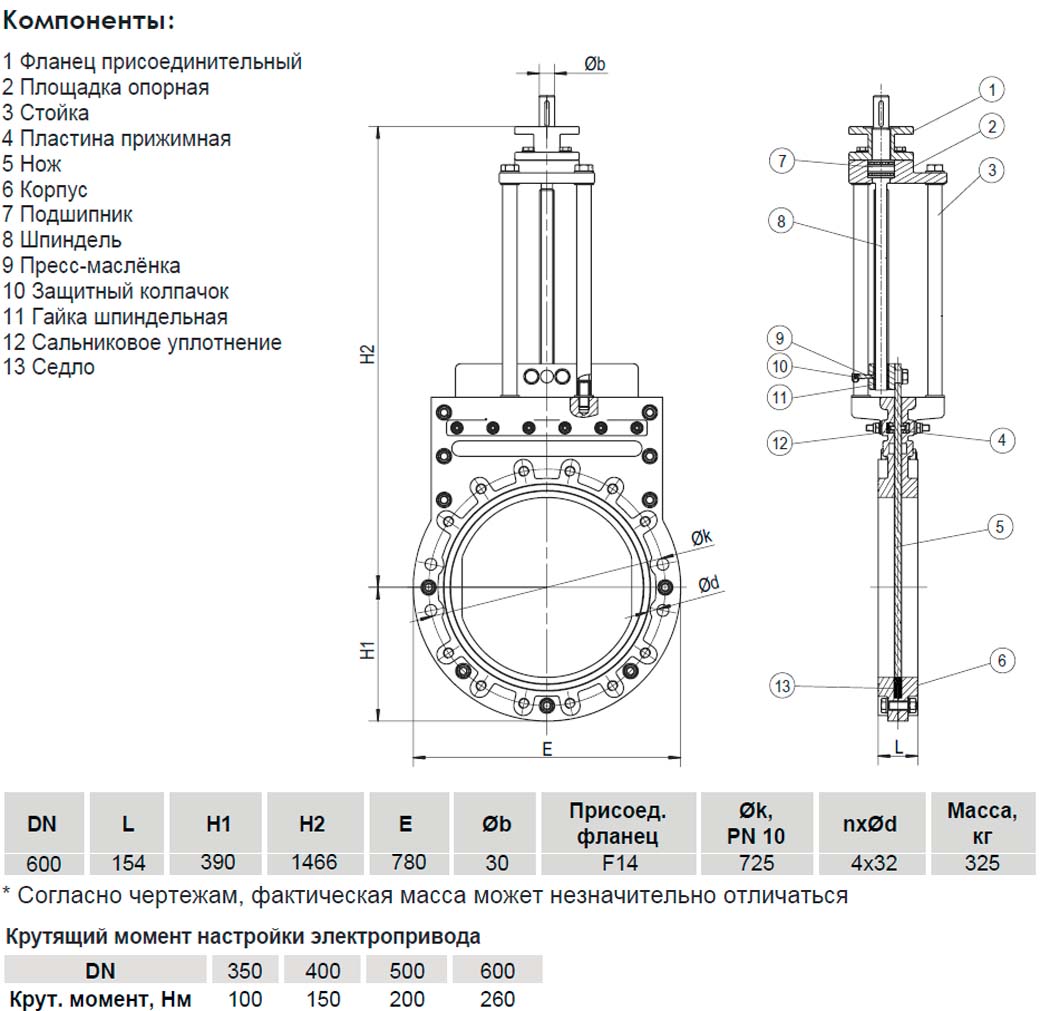 Задвижка шиберная ножевая VGA с невыдвижным шпинделем c ISO фланцем S72.60 DN 600