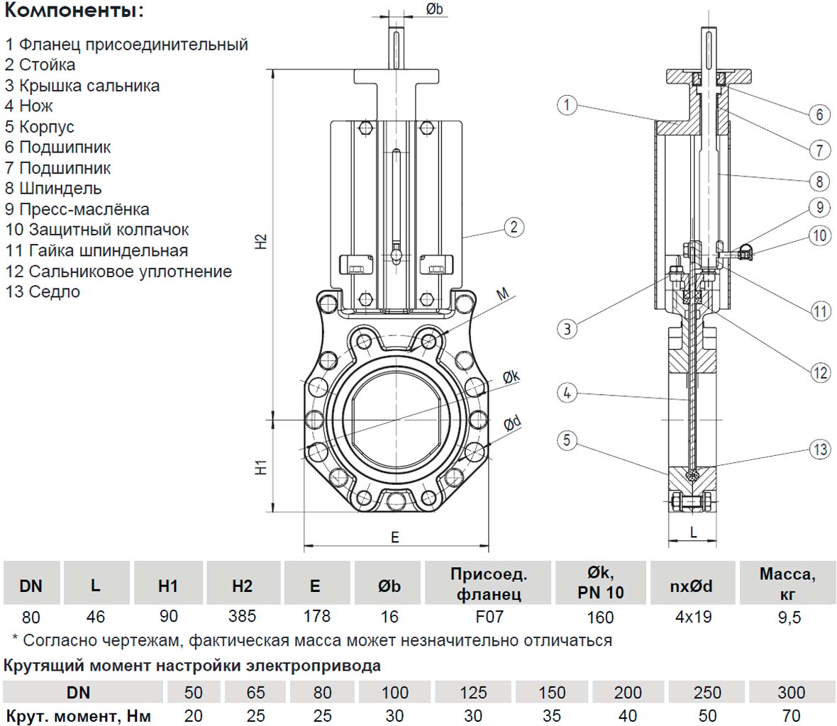 Маркировка задвижкиЗШ.0080.10.S72.60