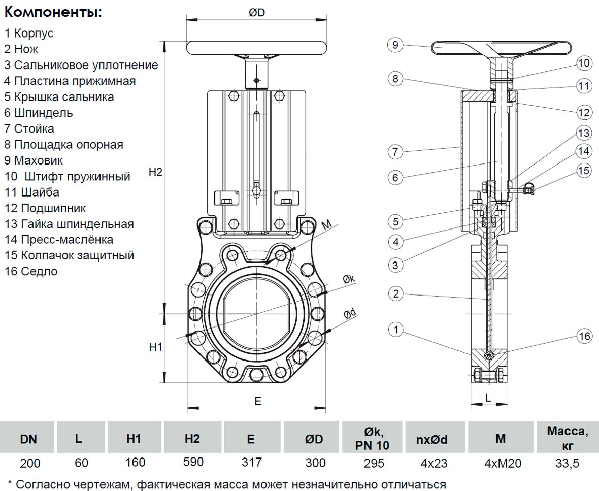 Задвижка шиберная ножевая VGA с невыдвижным шпинделем S72.10 DN 200