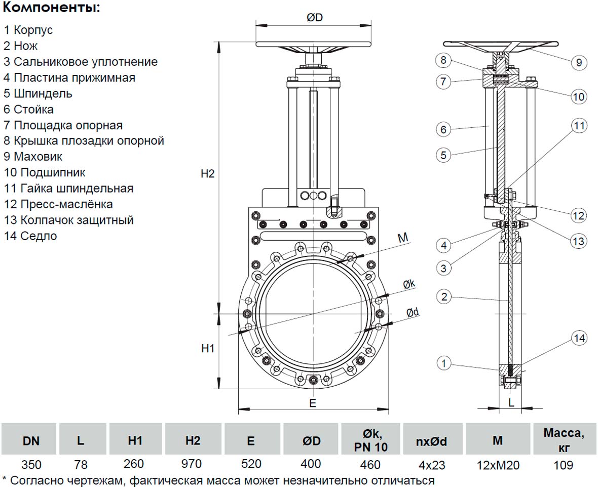 Задвижка шиберная ножевая VGA с невыдвижным шпинделем S72.10 DN 350