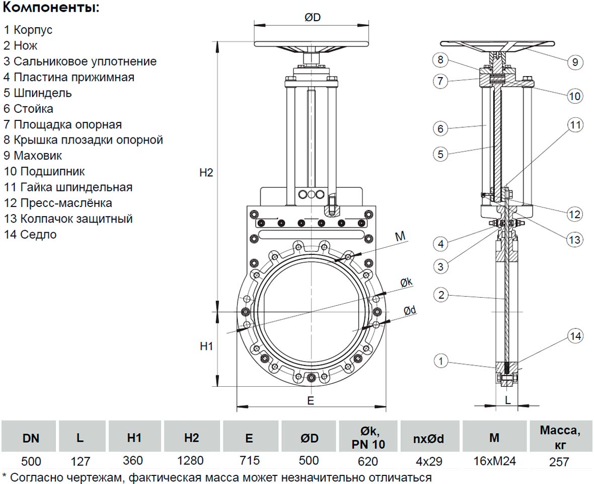 Задвижка шиберная ножевая VGA с невыдвижным шпинделем S72.10 DN 500