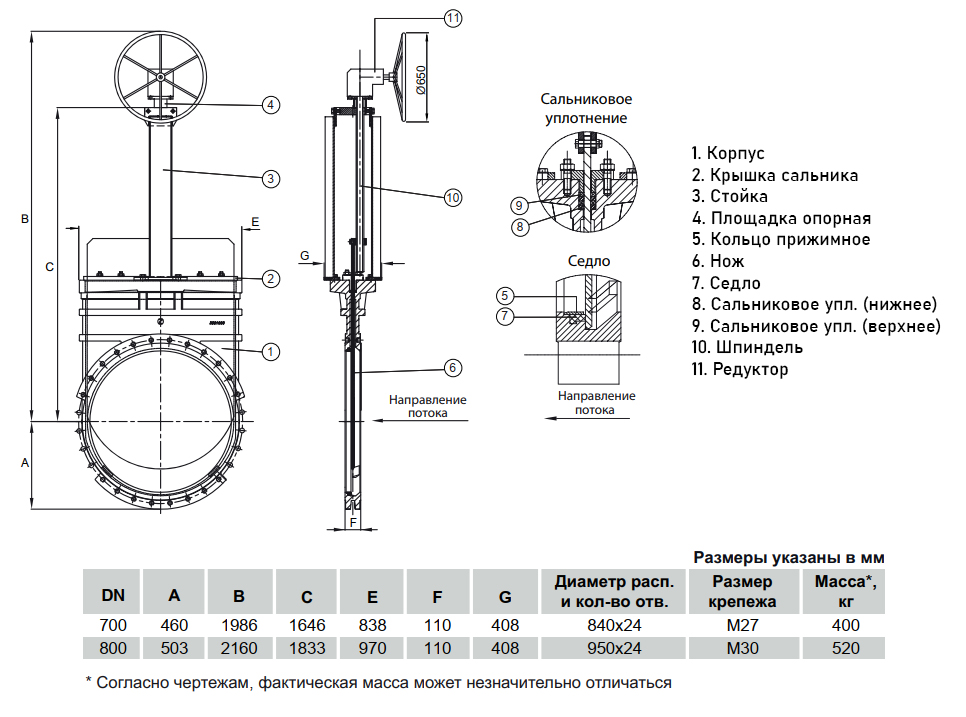 Задвижка шиберная VGA S72.11 DN 700 PN 10 с невыдвижным шпинделем с редуктором